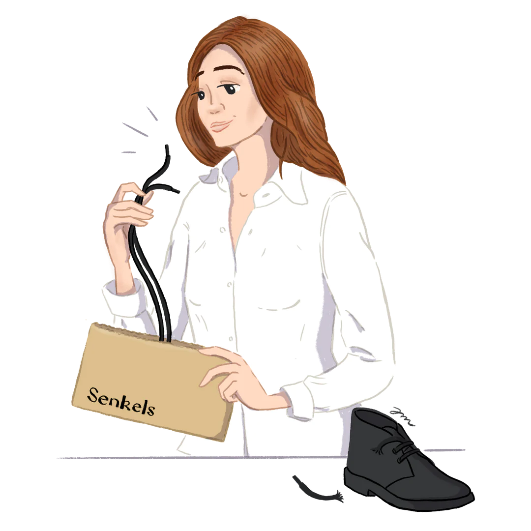 Senkels motvirker dette med våre 6 elegante doppsko laget av rent metall. Disse påføres individuelt, altså etter mottak av bestillingen, på de skreddersydde skolissene. På den ene siden betyr dette at hvert par av våre skolisser er et spesialtilpasset produkt, men også at disse metalldoppskoene er mye mer robuste takket være den håndlagde påføringen og nesten ikke kan løsne fra skolissene. Med våre skolisser kan du trygt si farvel til situasjonen der du må gå rundt med utflisede skolisser.